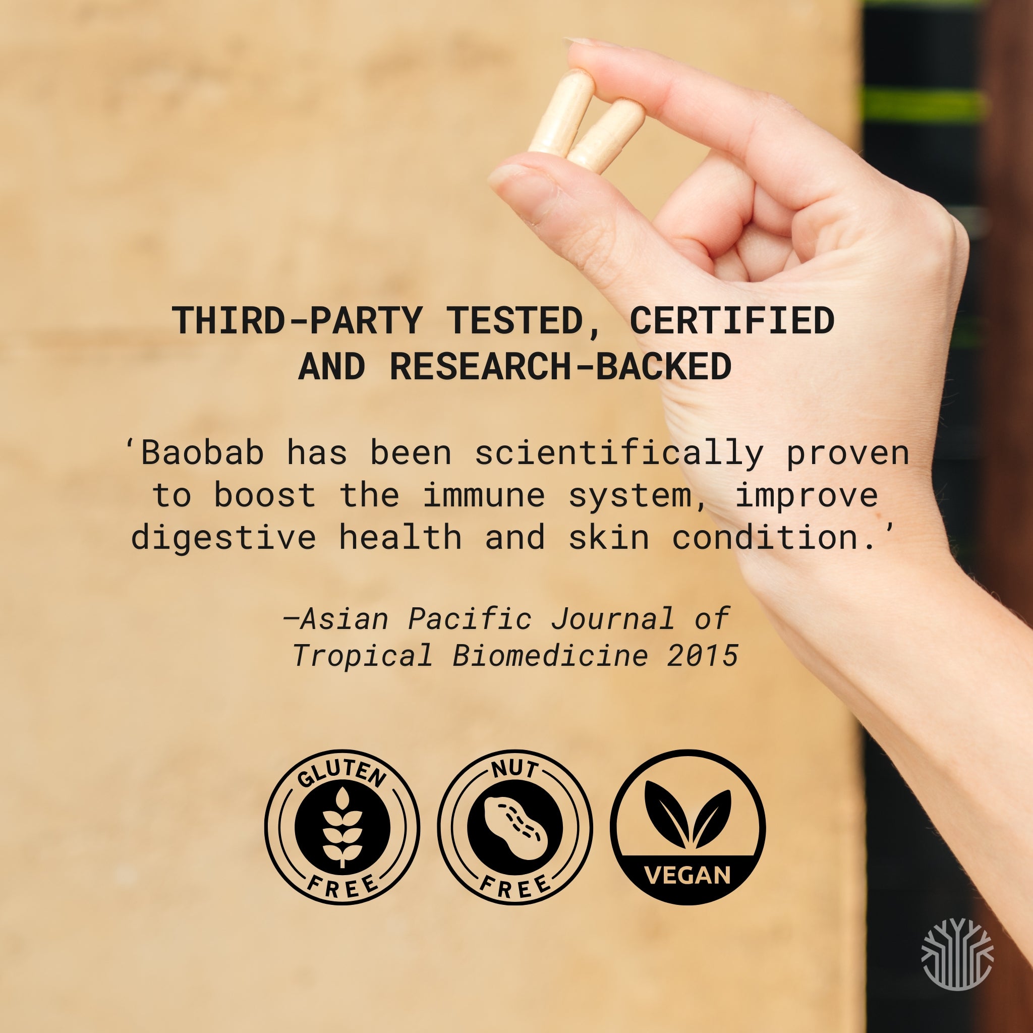 - Scientifically Backed: Our baobab capsules undergo rigorous third-party testing to confirm their nutritional value and efficacy.